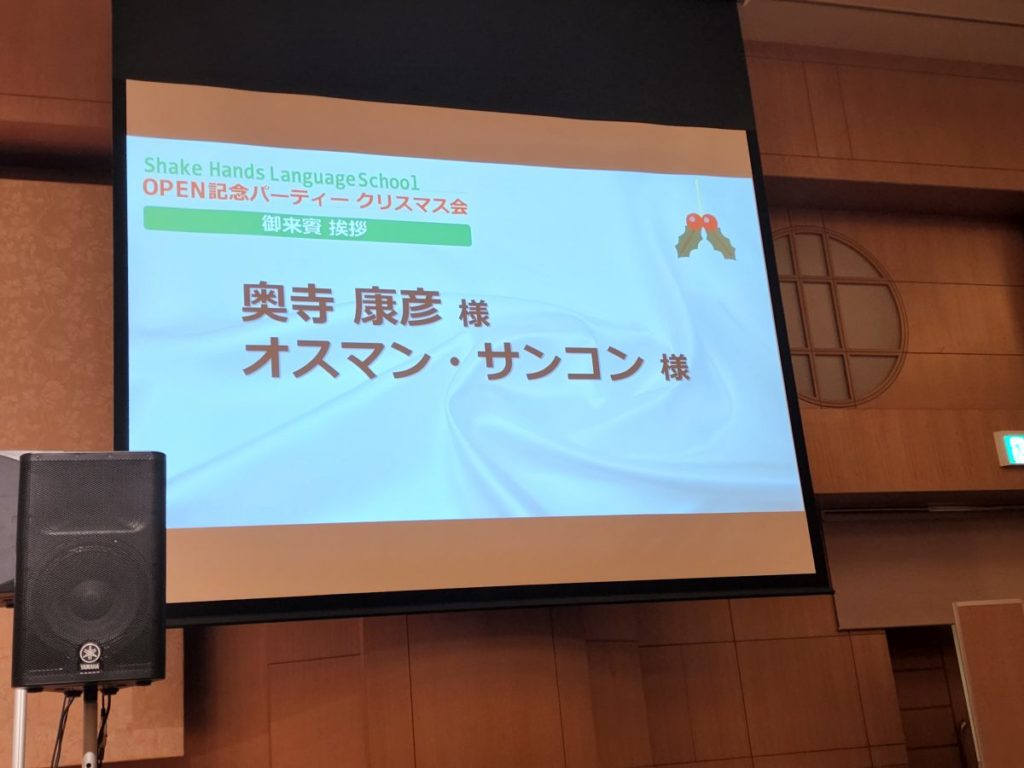 その川畑さんが、今度は“Shake Hands Language School OPEN記念パーティークリスマス会”に招待してくださいました。